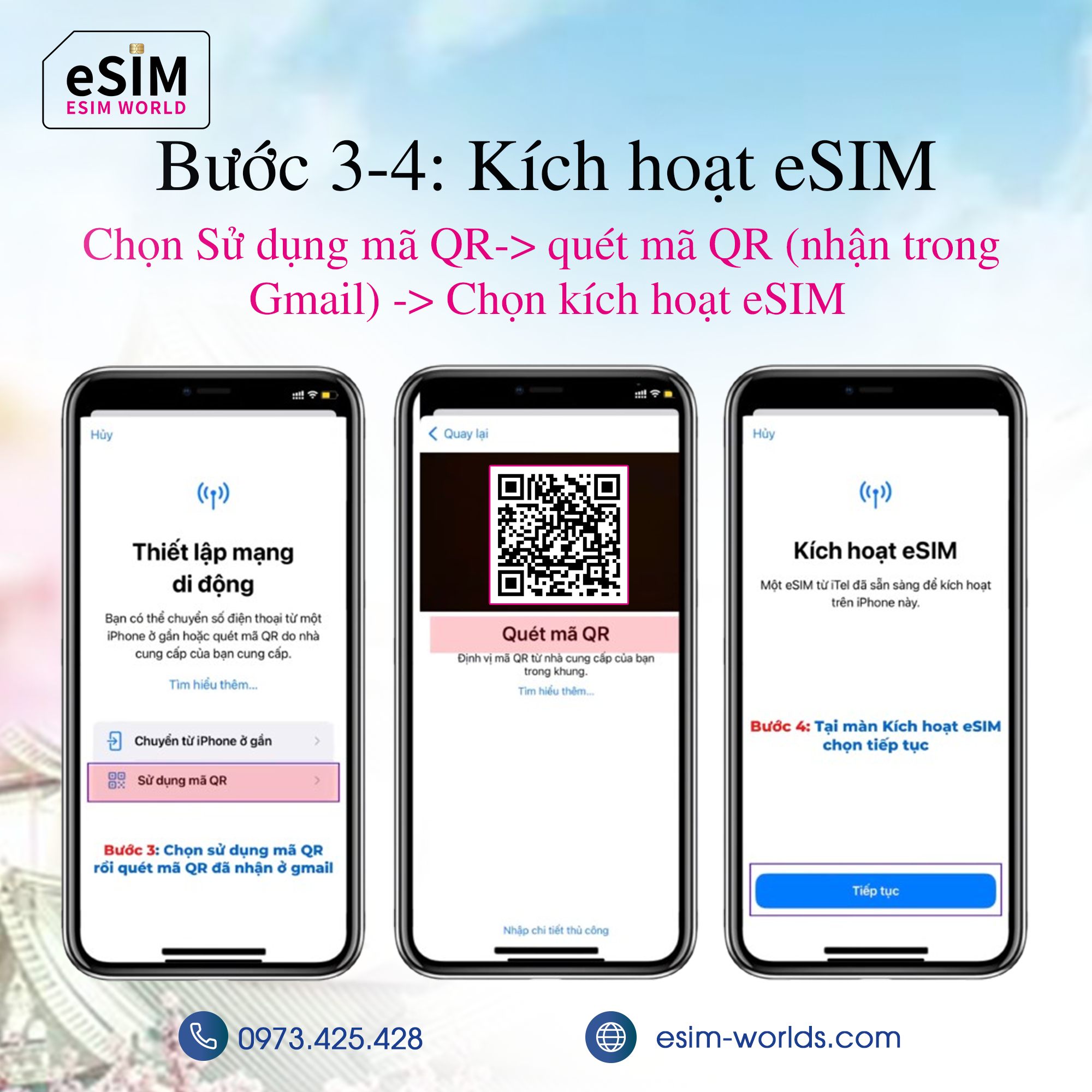 Bạn đã sẵn sàng cho chuyến đi sắp tới chưa? Liên hệ ngay với Thế giới eSIM để nhận mã QR và bắt đầu hành trình kết nối xuyên lục địa chỉ trong 30 giây!